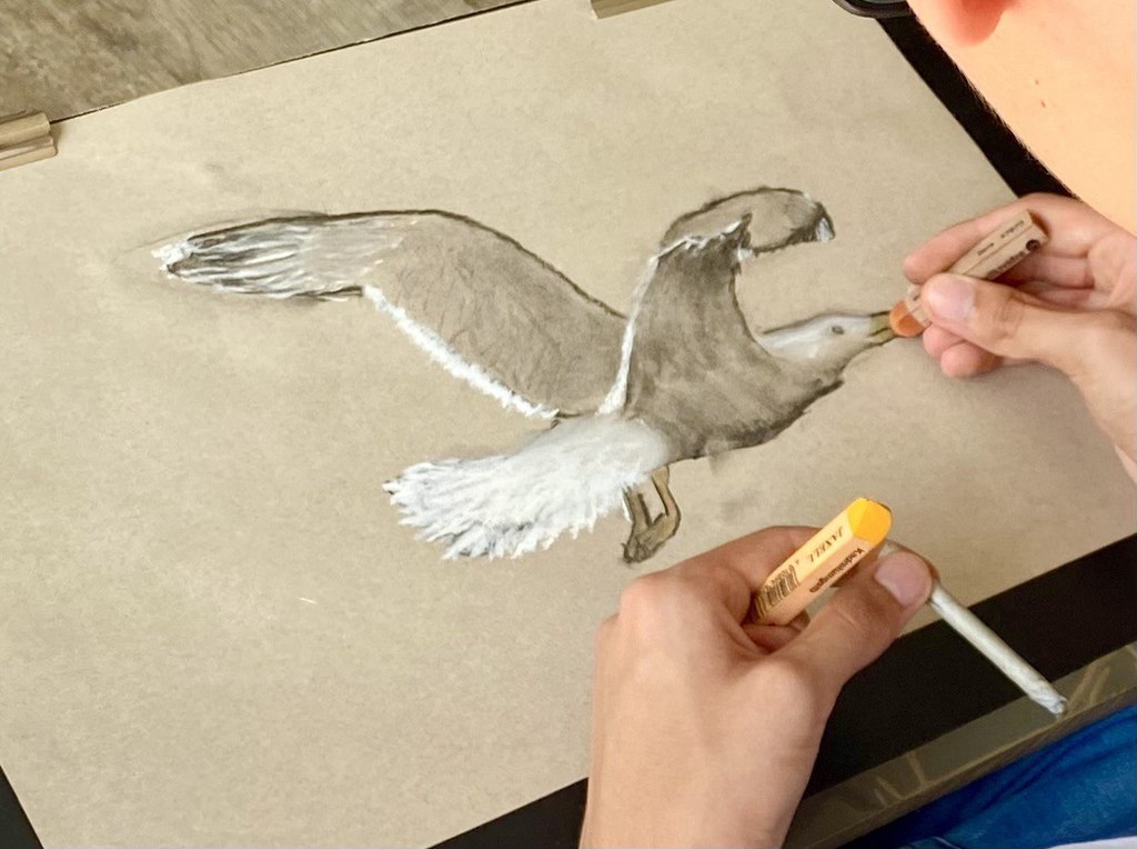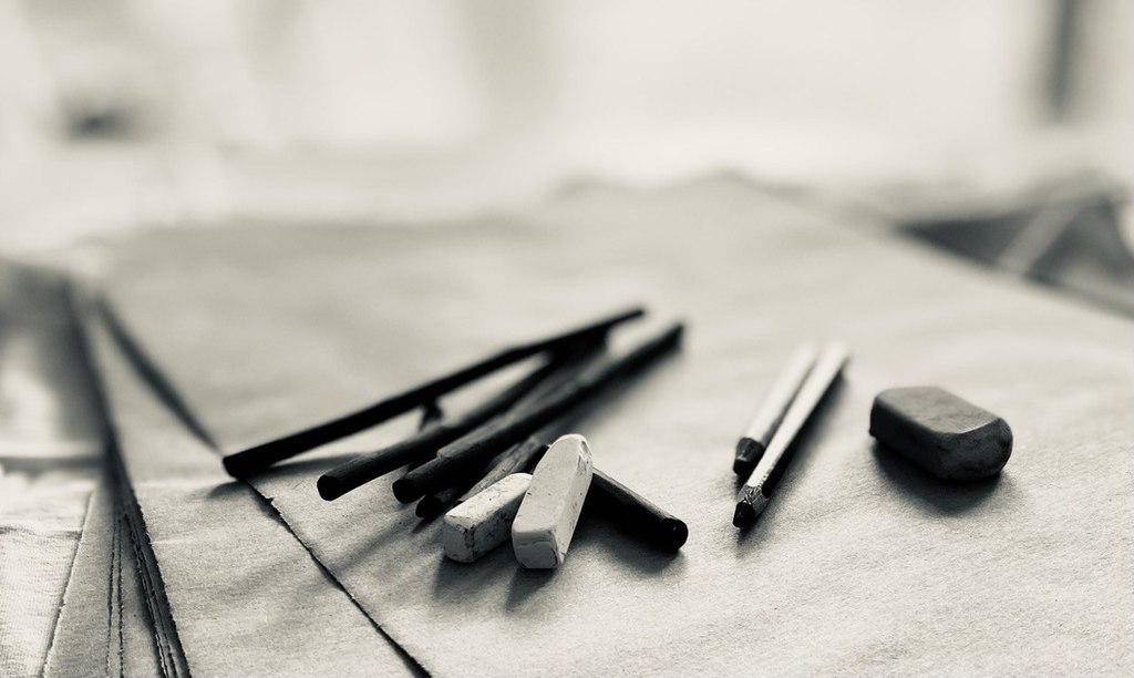 Als Malwerkzeug verwenden wir zunächst Kohle und in einem zweiten Schritt können Sie