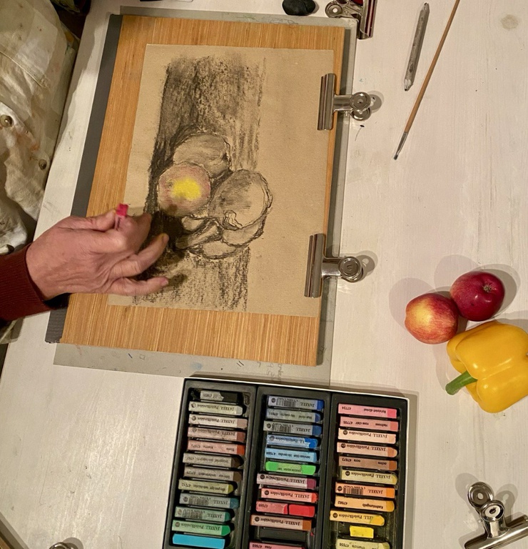 – je nach Belieben – Ihre Werke mit Pastellkreide weiter gestalten.